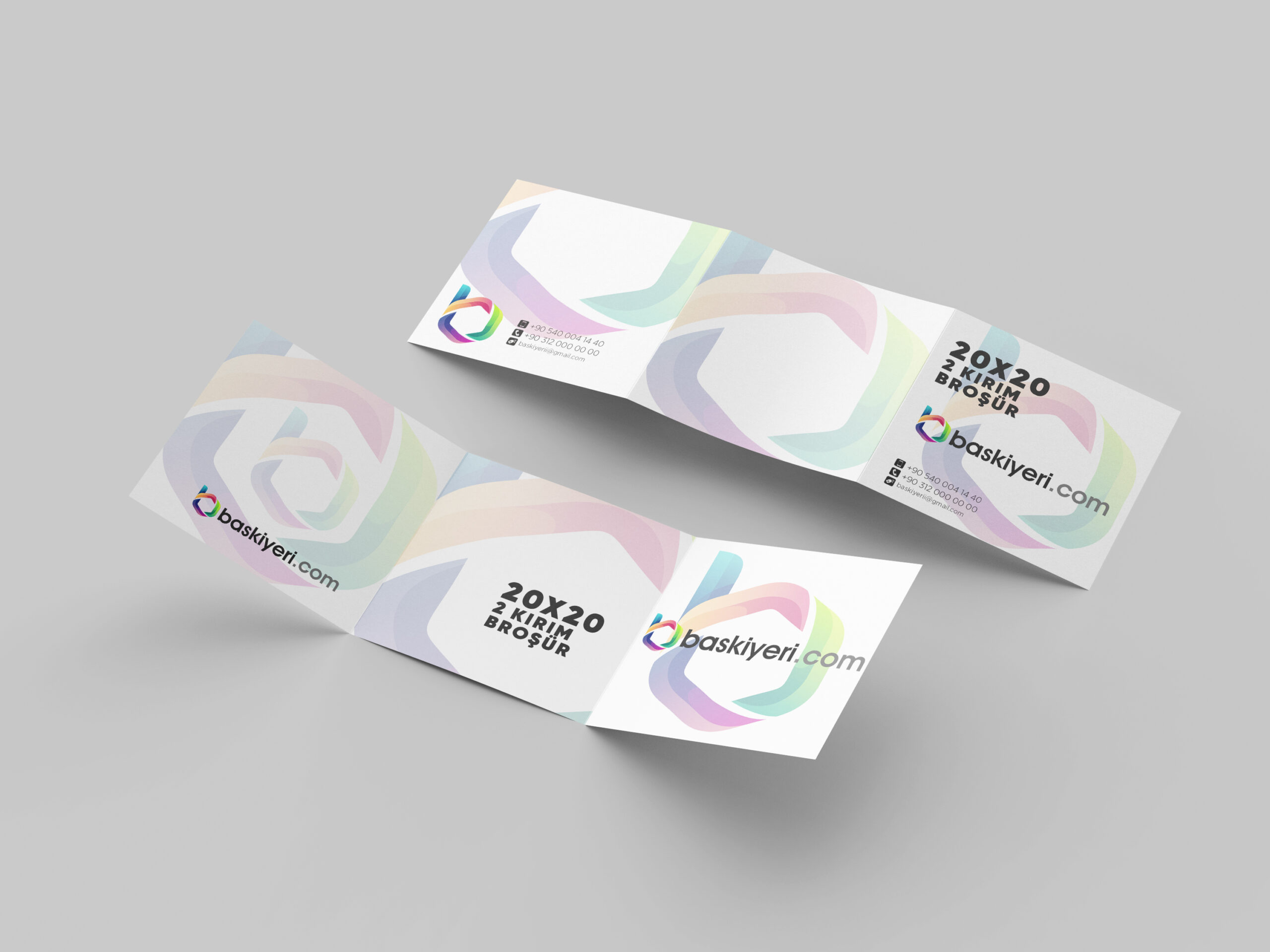 Büyük etki, kompakt tasarım! 20×20 cm boyutundaki bu iki kırımlı broşürler, geniş iç yüzeyiyle mesajınızı detaylı bir şekilde sunmanıza olanak tanır. İki kırımlı yapı, broşürünüzün daha fazla bilgi taşımasını sağlarken, taşınabilirliğini de artırır. Yüksek kaliteli renkli baskı ile görselleriniz canlı ve profesyonel bir şekilde ön plana çıkar. Etkinlikler, kampanyalar veya tanıtımlar için mükemmel bir tercih!