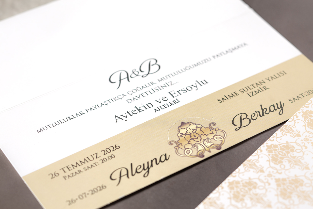 - Standart davetiye fiyatlarına baskı ücreti dahildir. Altın yaldız, gümüş yaldız, şeffaf davetiye ve UV baskılı davetiyelerde ek baskı ücreti uygulanabilir; seçtiğiniz modele göre müşteri hizmetlerimizden net bilgi alabilirsiniz.